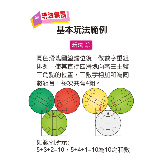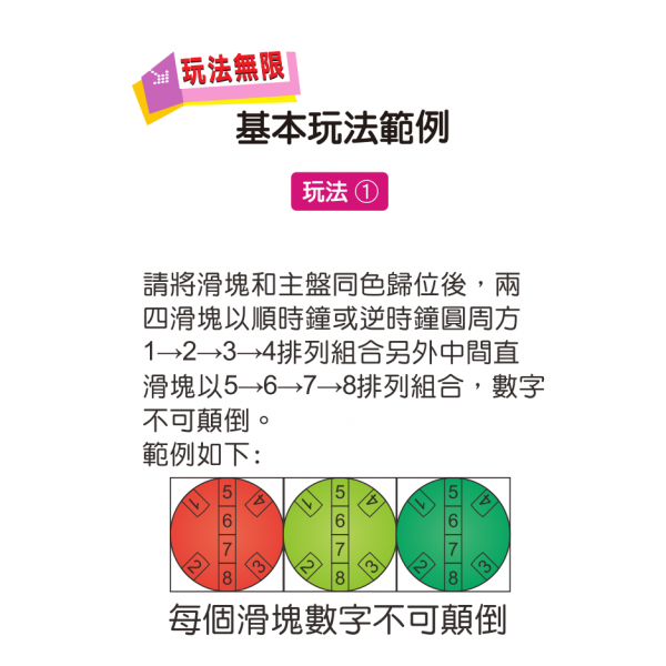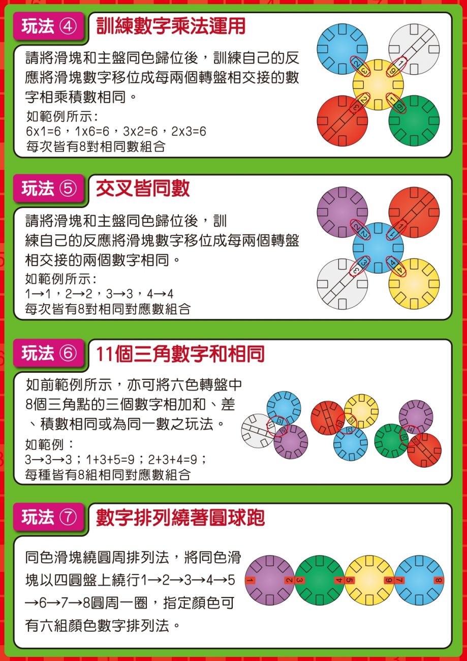 藉由滑塊的移動、轉盤的顏色、和數字的邏輯訓練手腦並用的敏捷性,