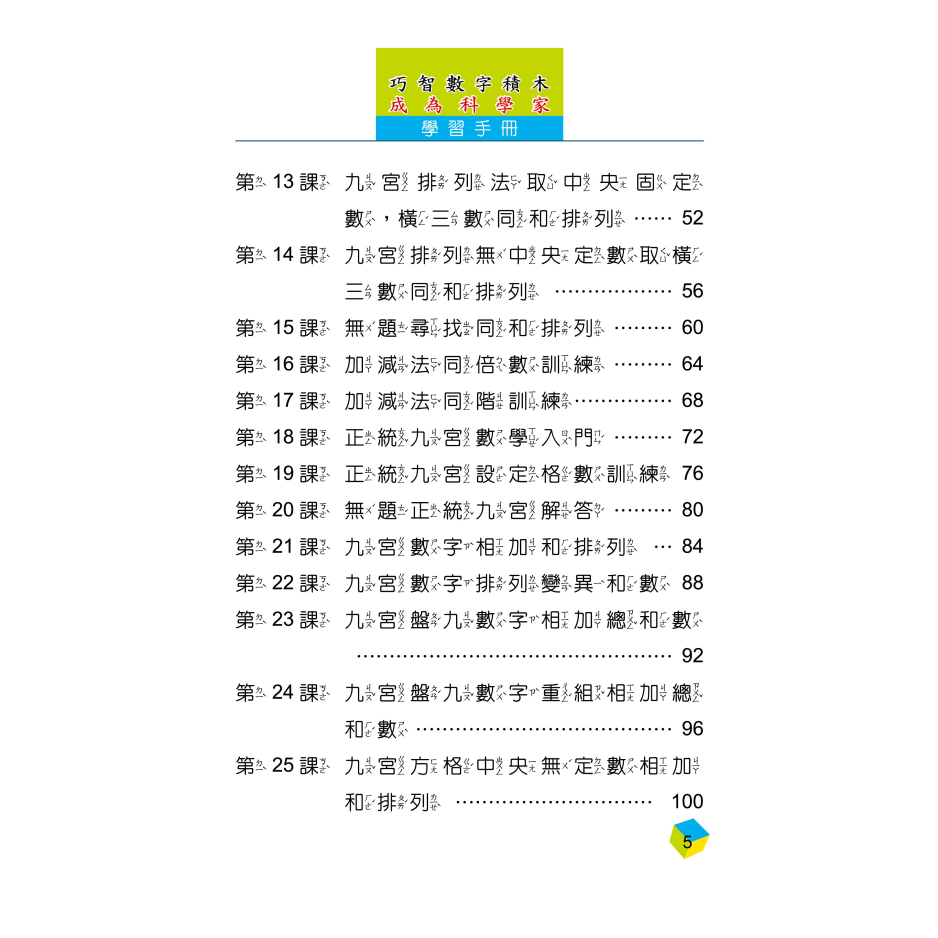 內容共30課,從認識數字積木至易經九宮數學的奧秘