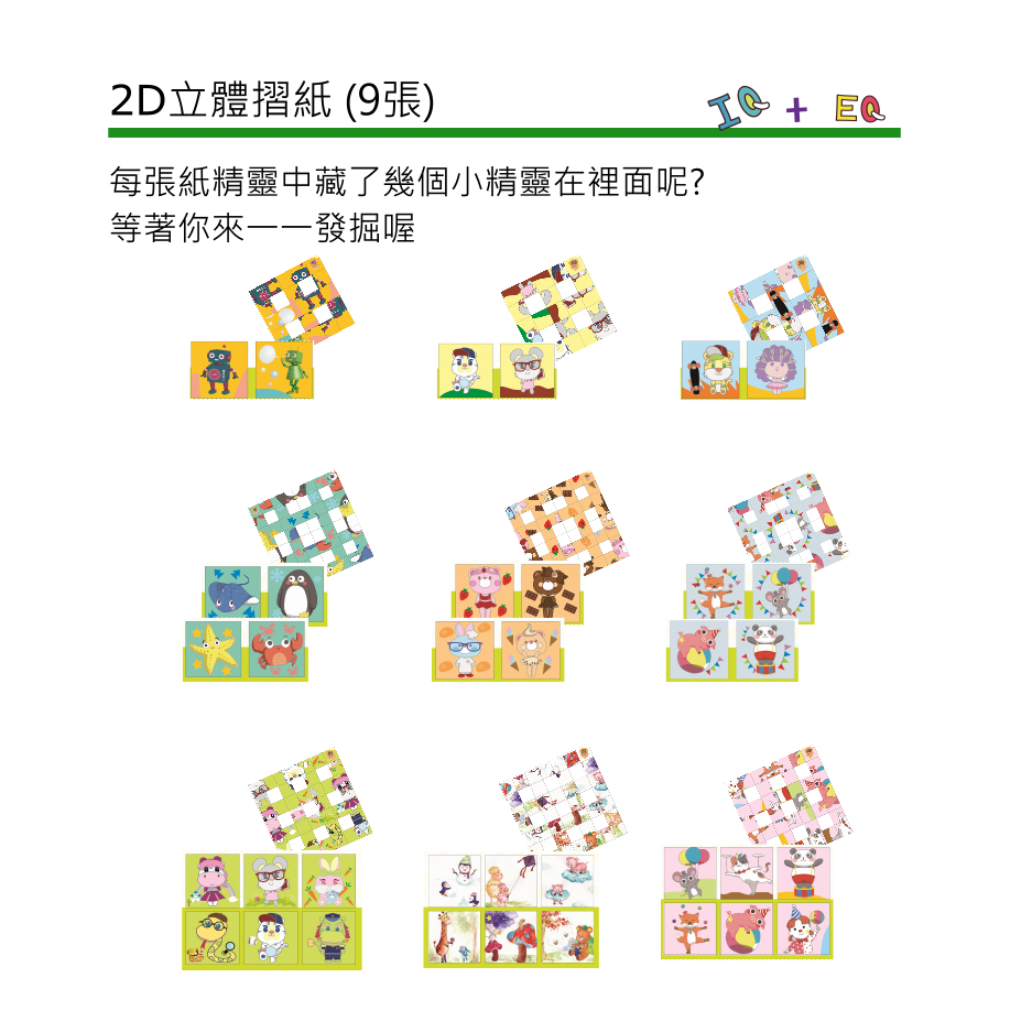 就像是紙版的魔術方塊,每張紙精靈摺紙都藏了不同的可愛精靈,