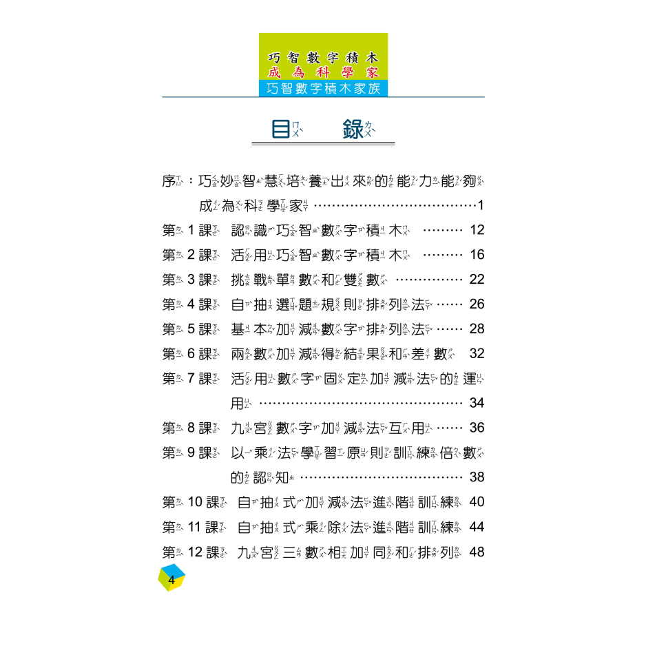 本手冊由簡而深,認識並學習巧智數字積木
